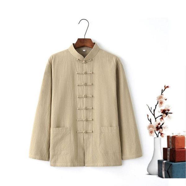 men's casual shirts chinese traditional mandarin collar tang shirt loose cotton single breasted tai chi garment plus size, White;black