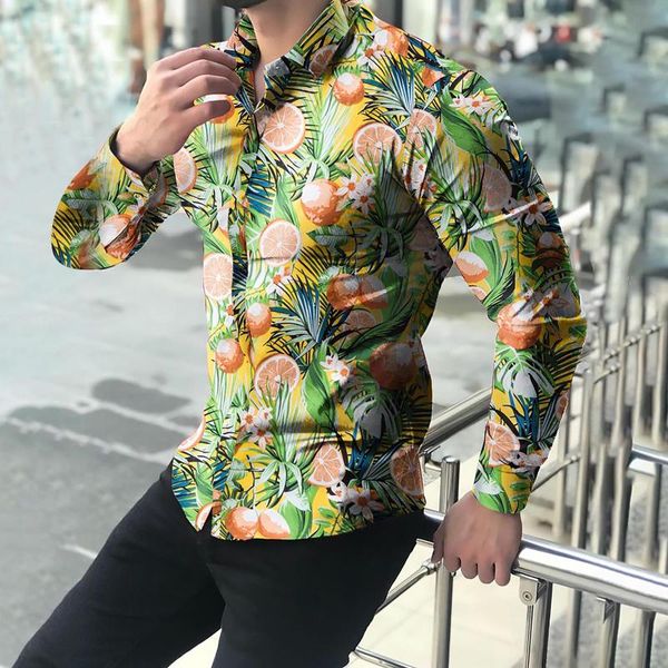 men's casual shirts fashion printed floral long sleeve autumn single breasted 2021 orange shirt lapel slim beach, White;black