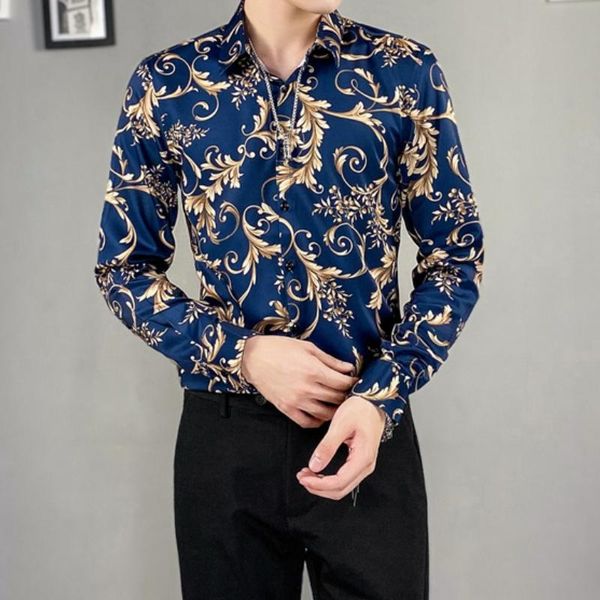 men's casual shirts floral men 2021 autumn long sleeve slim shirt streetwear nightclub clothing social party blouse, White;black