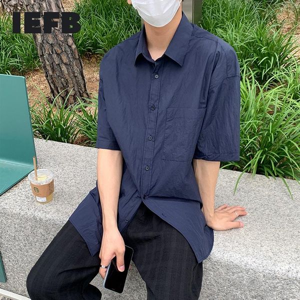 men's casual shirts iefb short sleeve shirt loose pleated fabric half 2021 summer clothing korean fashion single pocket, White;black