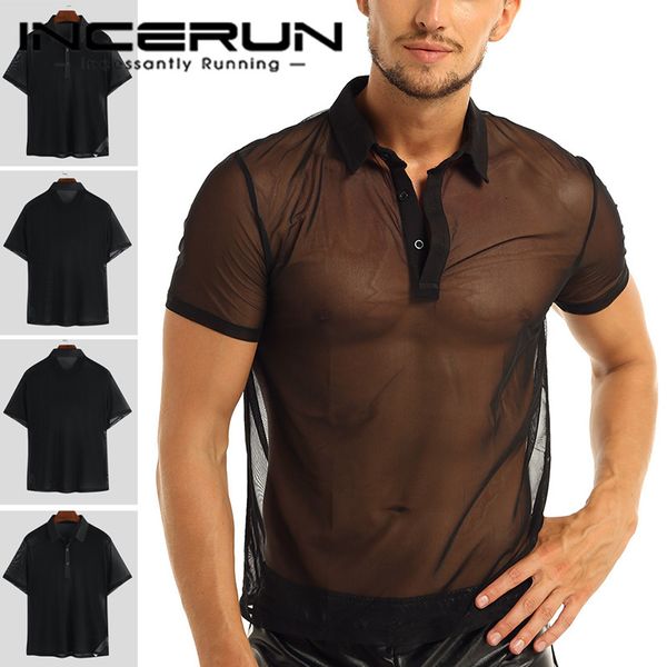 men's casual shirts incerun man undershirt men mesh sheer basic blouse male breathable transparent short sleeve slimming undershirts in, White;black