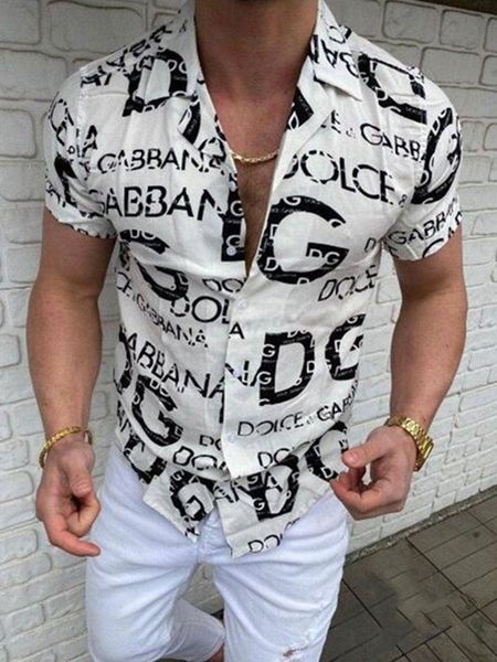men's casual shirts lapel letter print shirt 2021 summer hawaii beach short sleeve clothing top, White;black