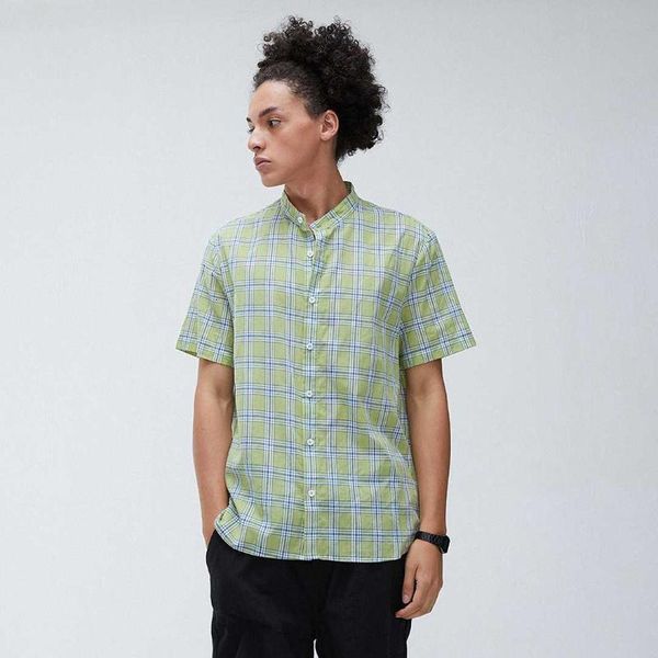 men's casual shirts men plaid shirt short sleeve camisa man brand cotton stand collar buttons summer male hawaiian harajuku plus size1, White;black