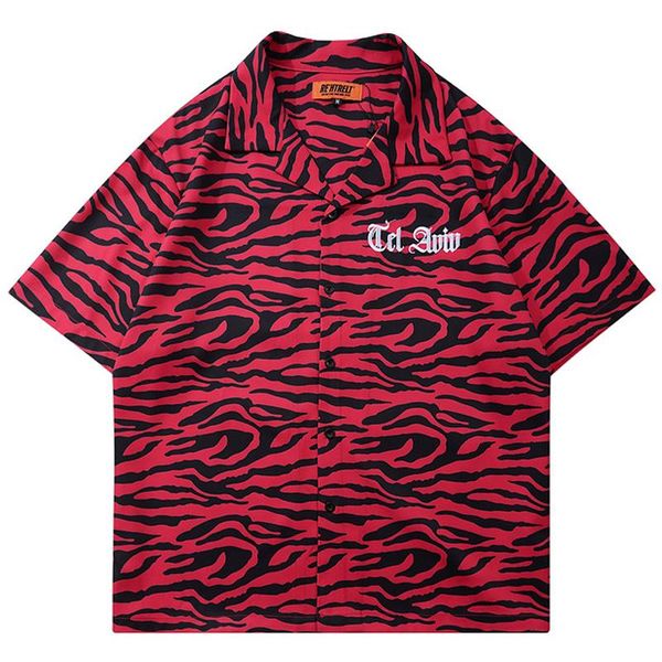 men's casual shirts mens full zebra printed hawaiian harajuku streetwear 2021ss short sleeve blouse punk rock oversize top, White;black