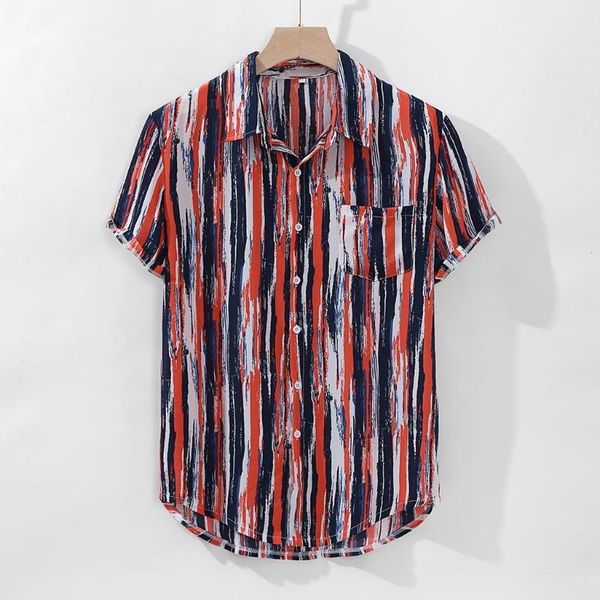 men's casual shirts mens hawaiian shirt male printed striped loose short sleeve causal breathable turn down collar -3xl, White;black