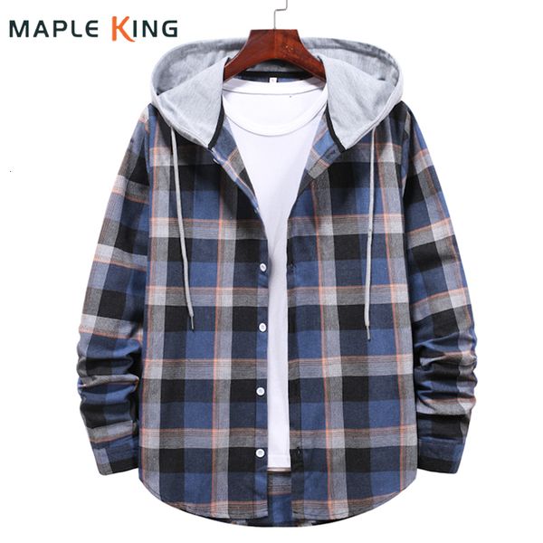 men's casual shirts mens plaid hooded checked flannel loose long sleeve blouse men chemise homme social jacket clothes 230130, White;black