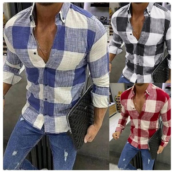 men's casual shirts plaid long sleeve cardigan shirt 2022 autumn polyester turn down collar, White;black