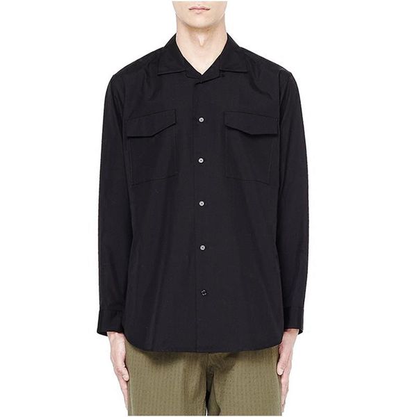 men's casual shirts spring and autumn long sleeve shirt with square collars round pockets, White;black