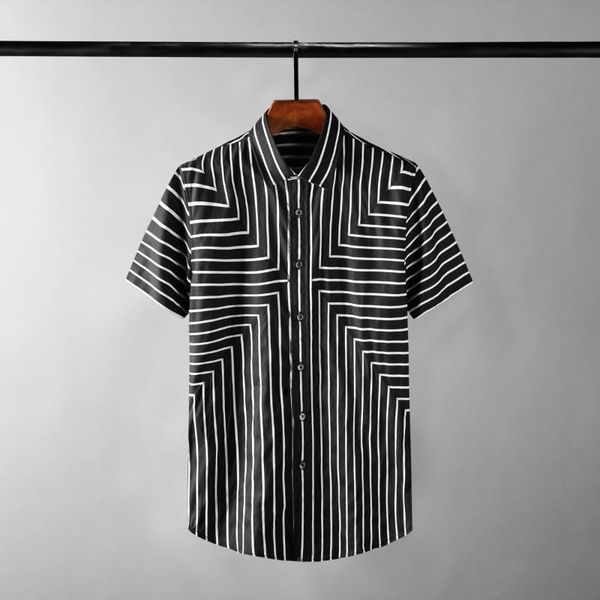 men's casual shirts summer cotton male luxury short sleeve stripe printed mens dress fashion slim fit man 2xl, White;black