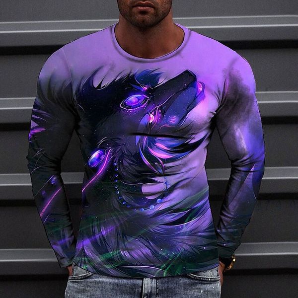 men's casual tee t shirt 3d print graphic wolf animal 3d print long sleeve fashion classic comfortable light pink light purple light g, White;black