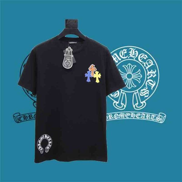 men's chrome/hearts 2021 summer crosin short cotton t-shirt fashion brand round neck half sleeve hand painted, White;black