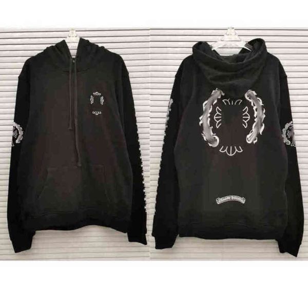 men's classic luxury sweatshirts brand ch designer hoodie fashion men women horseshoe sanskrit loose zipper jacket pullover hooded coa, Black