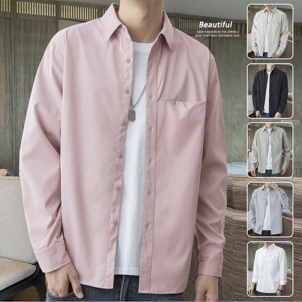 men's dress shirts long sleeve shirt spring 2021 leisure lining clothing korean fashion and autumn coat, White;black