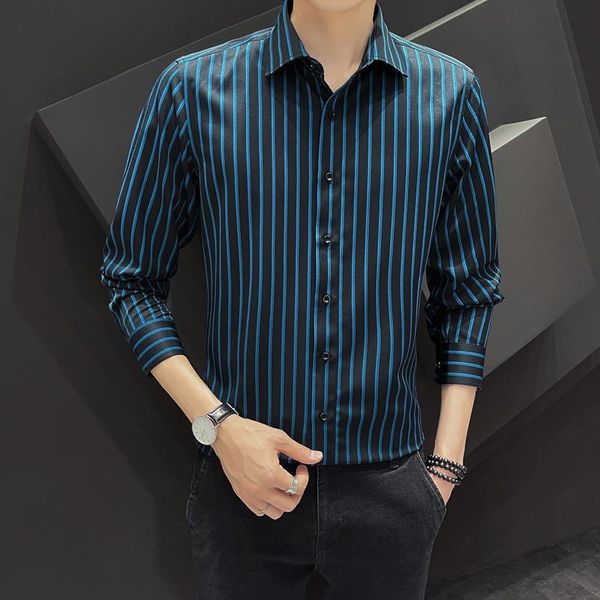 men's dress shirts oversized casual professional workwear striped shirt office male suit work business commuter quality, White;black