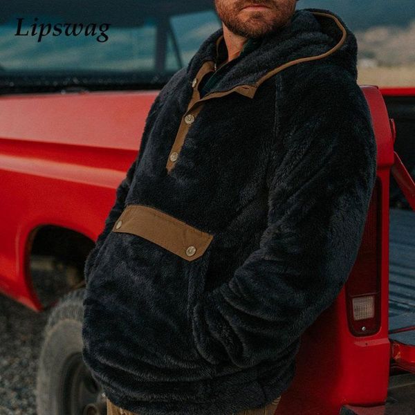 men's hoodies & sweatshirts 2021 winter fleece loose hooded sweatshirt for men casual patchwork long sleeve pullover autumn fashion bu, Black