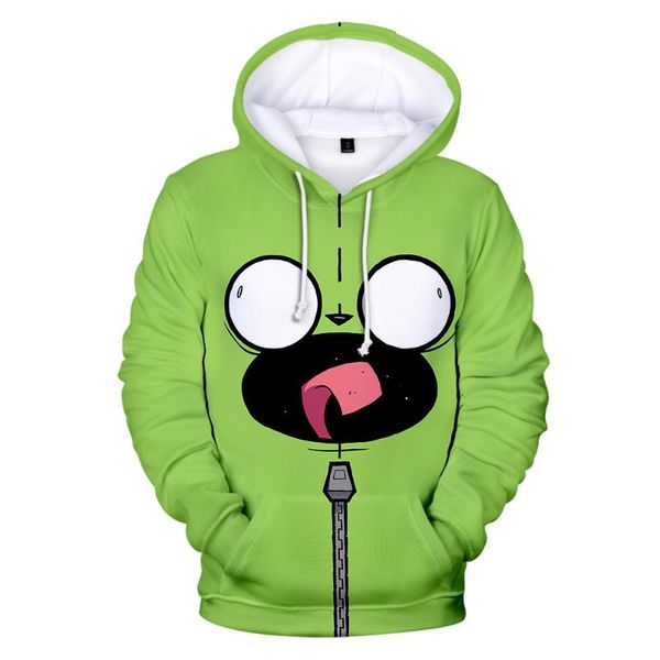 men's hoodies & sweatshirts 3d print invader zim hoodie and women's long sleeve sweatshirt ing loose street style boy's jacke, Black