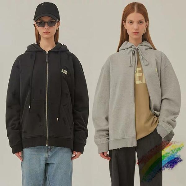 men's hoodies & sweatshirts 480g heavy fabric cardigan adererror hoodie men women 1:1 damage distressed zip ader error pullovers, Black