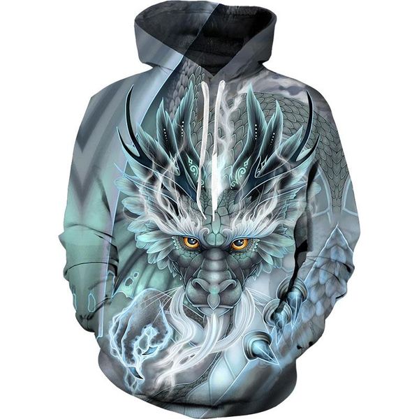 men's hoodies & sweatshirts autumn winter fashion stylish 3d men/women with hat printed dragon hooded plus size 5xl, Black