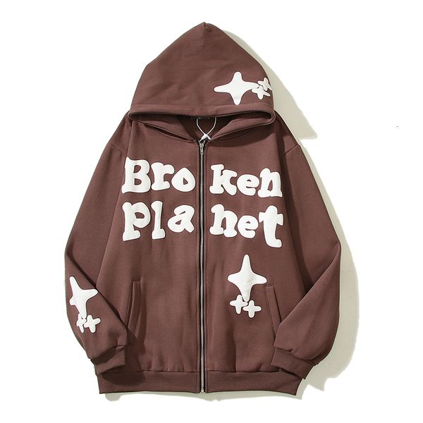 men's hoodies sweatshirts broken moon planet foam graffiti zipper hooded hoodies for men fleece casual cardigan coat hip hop loose swea, Black