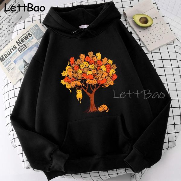 men's hoodies & sweatshirts cat tree printing sweatshirt kawaii black mens pullover japanese clothing winter casual couple clothes man