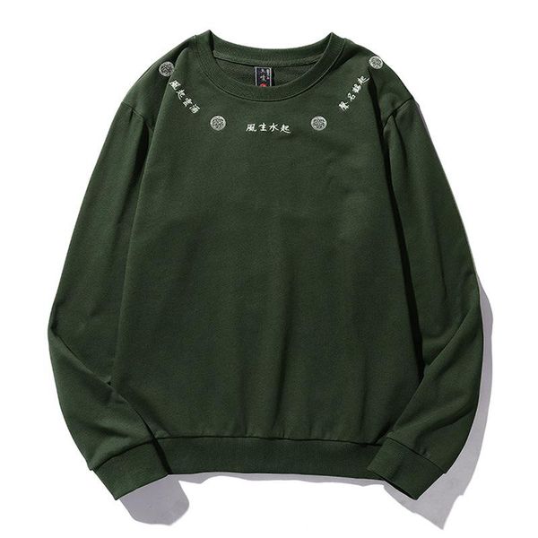 men's hoodies & sweatshirts chinese style embroidered character luxury long sleeved moletom 2021 quality cotton fashion loose men green, Black