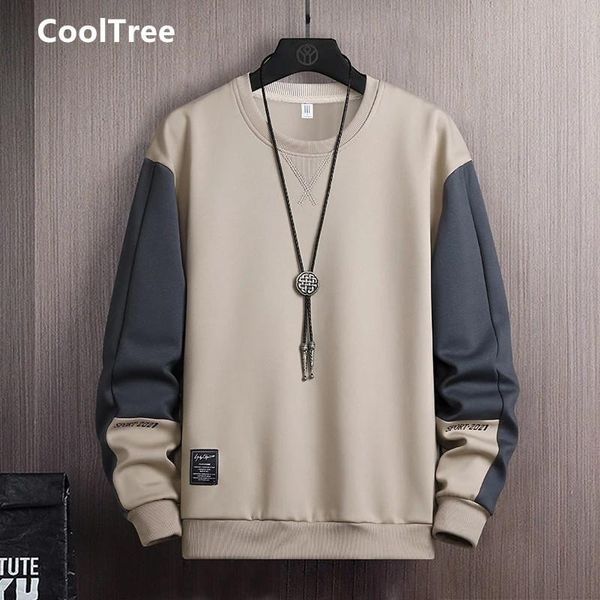 men's hoodies & sweatshirts cooltree men casual spring autumn patchwork round neck long sleeve male hip hop loose pullover streetwear, Black