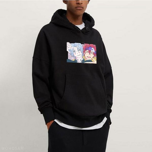 men's hoodies & sweatshirts fashion anime sk8 the infinity langa and reki print long sleeve harajuku manga oversized patchwork sweats, Black