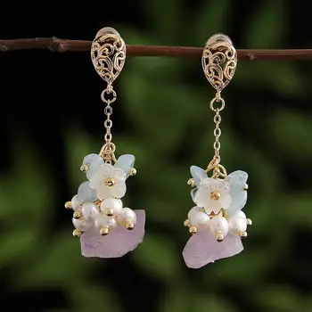 Coeufuedy Handmade Original Design Drop Earrings Natural Stone Freshwater Pearl Dangle Earrings For Women Party Fine Jewelry