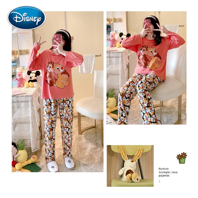 Disney Cartoon Minnie Squirrel Spring&Autumn Pajamas Female Autumn Cute Cartoon Long Sleeved Powder Home Service Suit Pajamas
