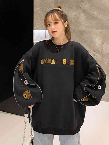men's hoodies & sweatshirts female hooded harajuku sweatshirt, korean style, kawaii, drawing, bear, autumn, wide, pullovers for girls,, Black