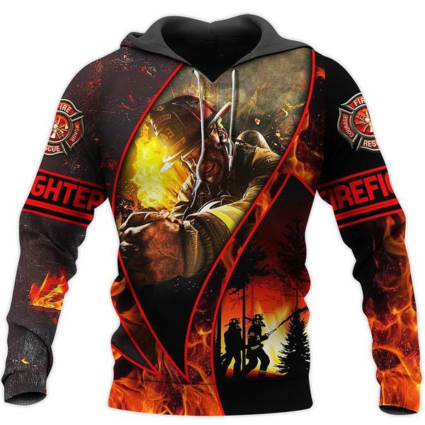 men's hoodies & sweatshirts fireman series 3d printing shirt zipper hoodie casual, Black