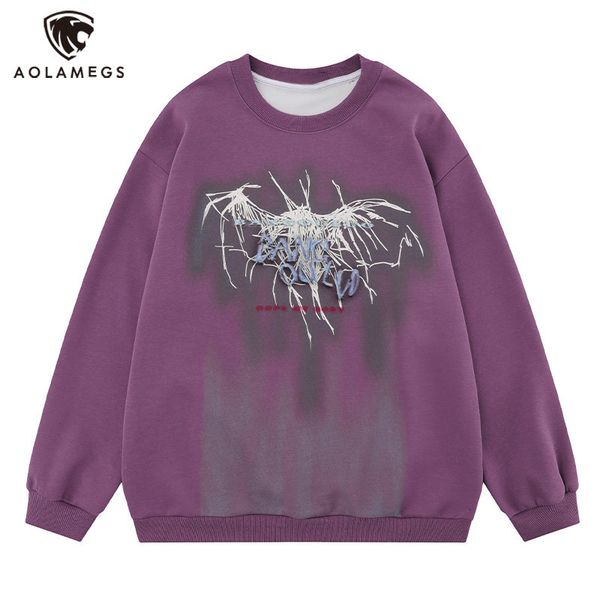 men's hoodies sweatshirts hip hop abstract bat graffiti letter printed sweatshirt for men oversized round neck rib sleeve pullover autu, Black
