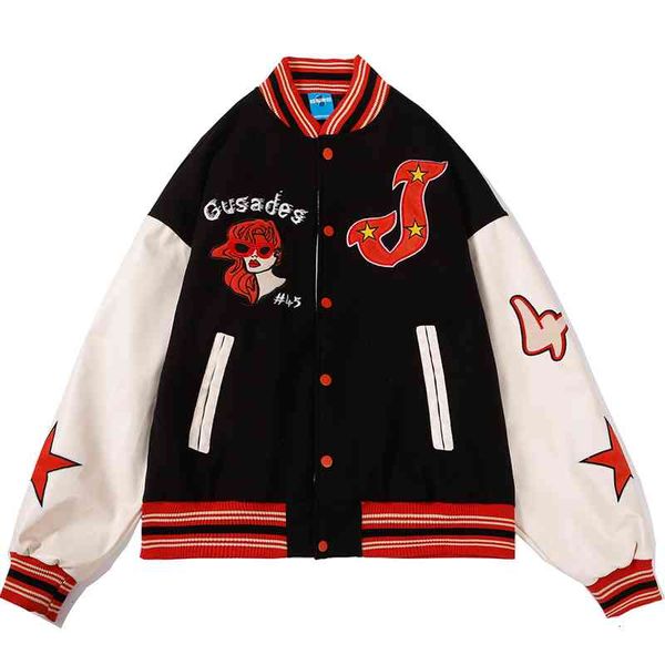 men's hoodies & sweatshirts hip hop streetwear varsity jackets embroidery patchwork harajuku baseball jacket fashion oversized punk got, Black