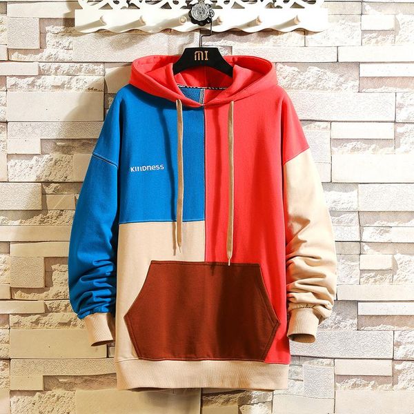 men's hoodies & sweatshirts japan style casual spring autumn 2021 patchwork hoodie sweatshirt thick fleece hip hop high streetwear clot, Black