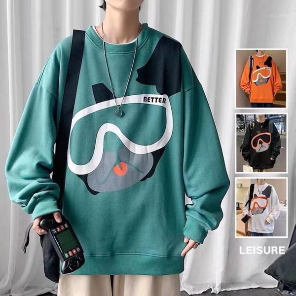 men's hoodies & sweatshirts long sleeve pullover mens o neck sweatshirt fashion 2021 print oversized hip hop japanese streetwear black