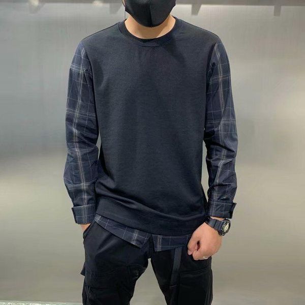 men's hoodies & sweatshirts long sleeve t-shirt men 's spring and autumn fake two pieces shirts patchwork sweater plaid round neck, Black