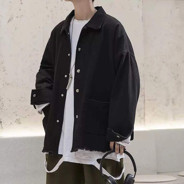men's hoodies & sweatshirts spring lapel workwear men's jacket loose black trend all-match casual preppy varsity hip hop streetwea