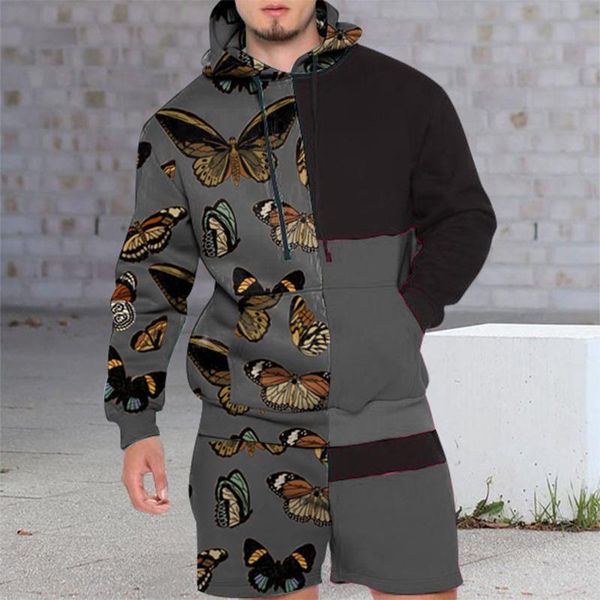 men's hoodies & sweatshirts two piece 2021 autumn leisure long sleeve sweater shorts sportswear, Black
