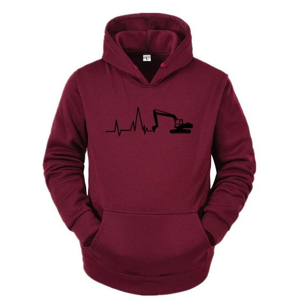 men's hoodies & sweatshirts winter excavator men long sleeve cotton heartbeat of man clothing oversized hoodie sweatshirt, Black