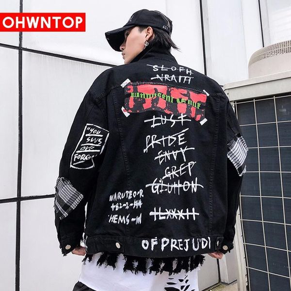 men's jackets 2021 men hip hop jacket streetwear loose denim letter graffiti harajuku oversize black jeans coat street wear 1, Black;brown