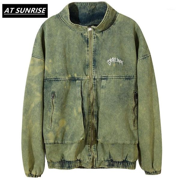 men's jackets at sunrise 2021 hip hop yellow jacket letter embroidery zipper denim tie dye casual jeans coats street stand, Black;brown