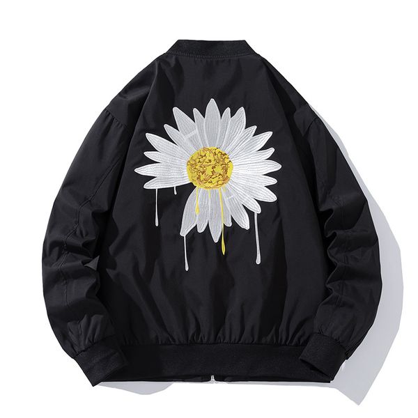 men's jackets bomber embroidery men women daisy flower baseball fashion hip hop streetwear coat autumn winter korean clothes dl8t, Black;brown