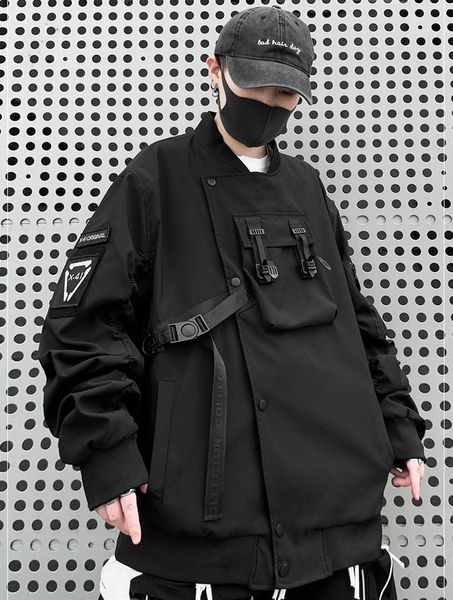 men's jackets functional multi pockets autumn versatile loose pilot jacket casual coat hip hop harajuku patchwork windbreaker, Black;brown