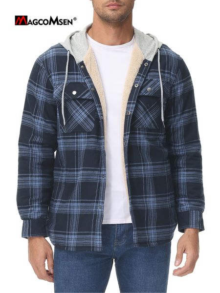 men's jackets magcomsen plaid jacket warm fleece coats winter windproof hooded flannel shirts sherpa lined 230810, Black;brown