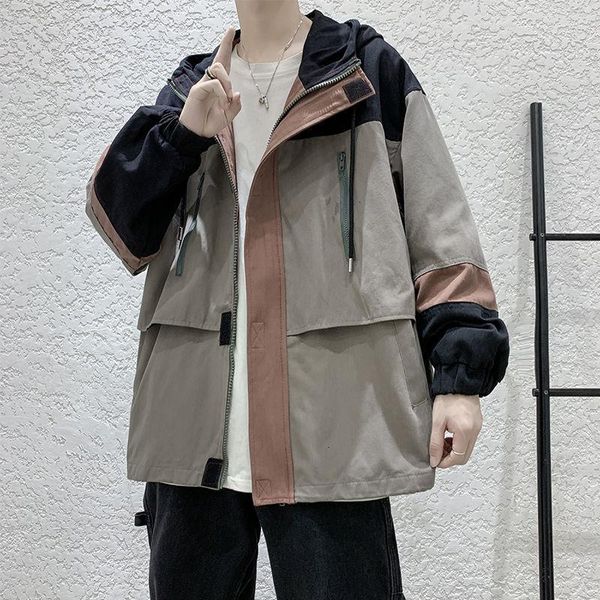 men's jackets oversized patchwork safari style men casual loose outerwear 2021 autumn streetwear male clothing, Black;brown