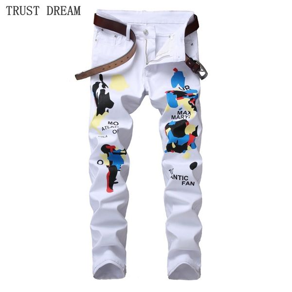 men's jeans 2021 europeans style men floral white slim paint black letters personal man casual club street fashion leisure jean, Blue