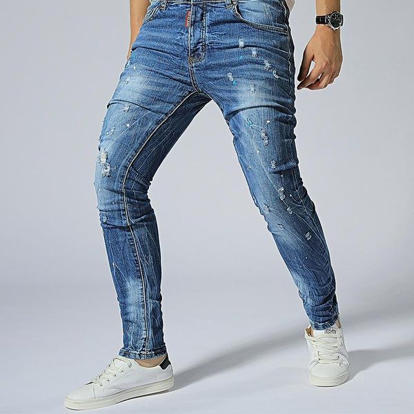 men's jeans elasticidade dos homens cor em linha reta buraco denim diariamente para festas de masculino magro ajuste cowboy, Blue