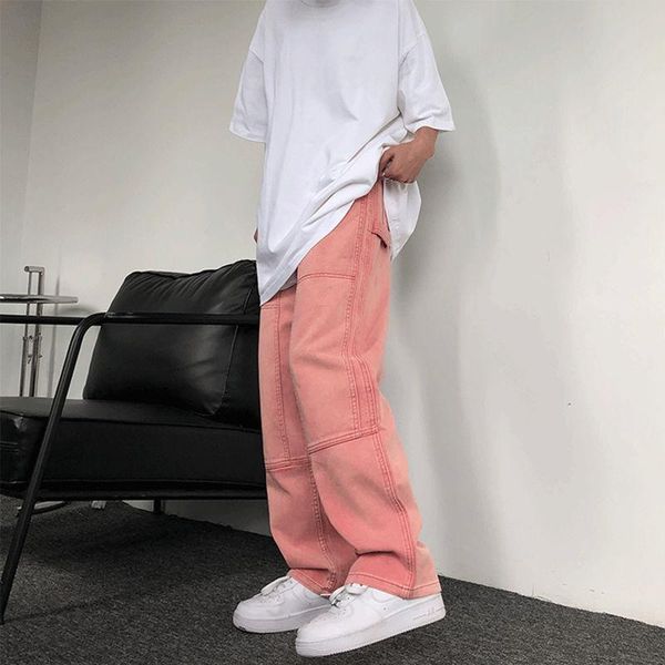 men's jeans pantalones de moda nueva suelto recto casual neutral denim carga mens loose ripped for men hombre homme streetwear hip hop, Blue