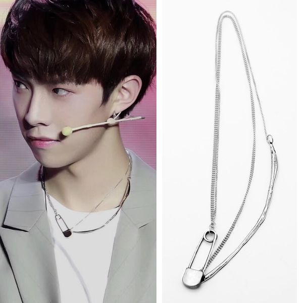 men's necklace dependent designer curved needle necklace clavicle chain ins net red women's sweater chain star same style, Silver