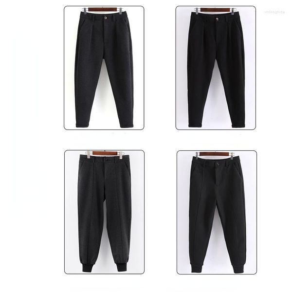 men's pants 2022 men trousers long wool tweed leisure cotton male gentleman herringbone business suit pant for wedding groom g96, Black